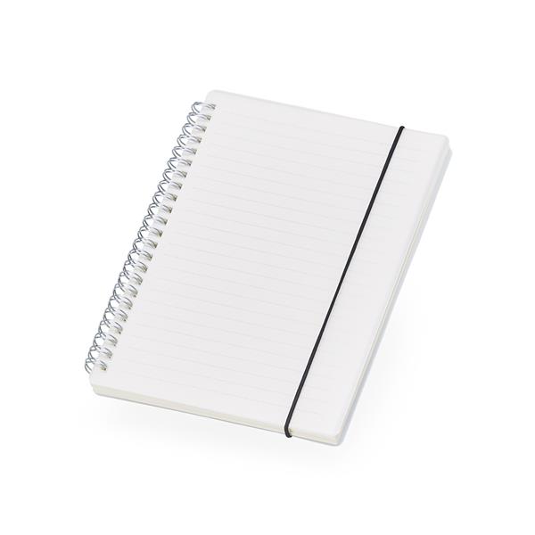Ref: CADERNO-122Caderno A5 Plástico Com ElásticoCaderno A5 com capa plástica e elástico para lacre, contém aproximadamente 80 folhas marfim com pauta. Altura : 21 cm Largura : 15,1 cm PERSONALIZADOQuantidade mínima: 50 Incluir no Orçamento Solicitações adicionais Produto indisponível