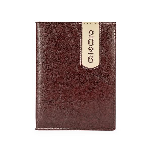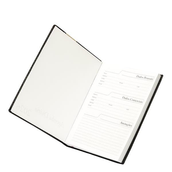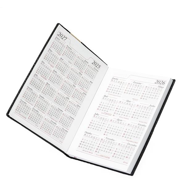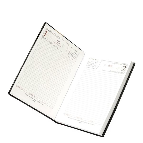 Ref: AGENDA-118Agenda Couro Sintético 2026Agenda diária com capa em couro sintético, detalhes de costura e o ano "2026" presente no canto superior direito. Contém marca-páginas em fita de cetim, páginas dedicadas a dados pessoais, calendários de 2025 a 2027, contatos, planejamento diário e mapas. Altura : 20 cm Largura : 14,7 cm Espessura : 2 cm Peso aproximado (g): 375 PERSONALIZADOQuantidade mínima: 50 Incluir no Orçamento Cores * Marrom Preto Quantidade 1 Selecione 50 100 200 300 Quantidade 2 Selecione 50 100 200 300 Quantidade 3 Selecione 50 100 200 300 Informe outra quantidade min. 50 Solicitações adicionais > Incluir No Orçamento