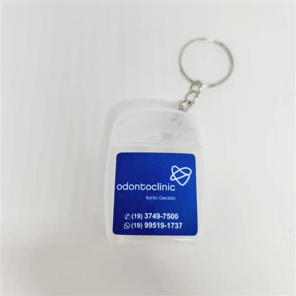 Ref: HIGIENE-101Fio Dental Chaveiro TransparenteFio Dental Chaveiro Transparente. Extra fino, seu fio não desfia e tem um refrescante sabor de menta. Nesta versão vem com 25 metros de comprimento. PERSONALIZADOQuantidade mínima: 50 Incluir no Orçamento Solicitações adicionais Produto indisponível
