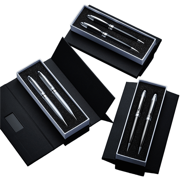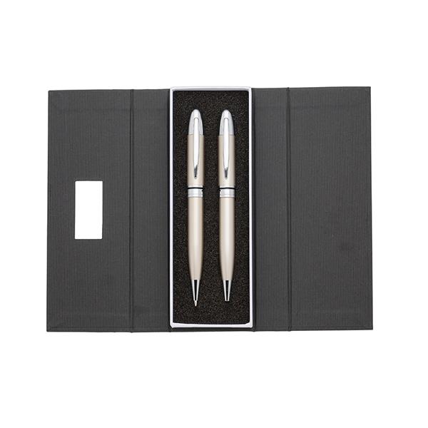 Ref: CANETAM-255Conj. Caneta e Lapiseira MetalConjunto caneta e lapiseira em estojo de cartonagem com placa central para personalização. Clip metal e anel central possui: anel fino prata, anel preto fino e um anel maior prata com relevo e acionam por giro. Estojo revestida com espuma na parte interna. PERSONALIZADOQuantidade mínima: 1 Detalhe do Brinde Incluir no Orçamento Cores * Champagne Cinza Cromado Preto Quantidade 1 Selecione 50 100 200 300 Quantidade 2 Selecione 50 100 200 300 Quantidade 3 Selecione 50 100 200 300 Informe outra quantidade min. 50 Solicitações adicionais > Incluir No Orçamento