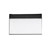 Ref: PCARTAO-101Porta Cartão de Metal com Couro SintéticoPorta cartão de metal com couro sintético. Couro com textura e costura preta, parte interna revestida com veludo. Tamanho total aproximado (CxL): 9,9 cm x 6,5 cm PERSONALIZADOQuantidade mínima: 50 Incluir no Orçamento Solicitações adicionais Produto indisponível