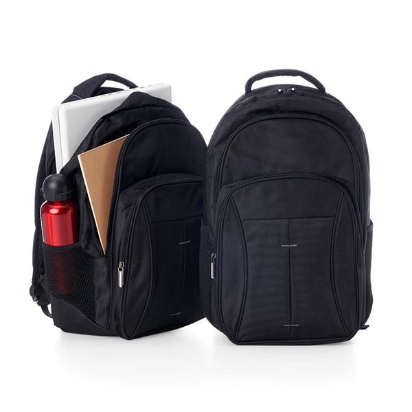 Ref: MOCHILA-153Mochila Poliéster 27LMochila confeccionada em poliéster com compartimento para notebook. Contém compartimento grande com bolso para notebook até 15,6 polegadas, compartimento mediano com zíper, bolso frontal com ziper, alça de mão, alças de ombro e costas acolchoada com revestimento antitranspirante e bolsos laterais telados. Altura : 45,5 cm Largura : 29 cm Profundidade : 21 cmQuantidade mínima: 50 Incluir no Orçamento MOCHILA-153 Mochila confeccionada em poliéster com compartimento para notebook. Contém compa... Ref.: MOCHILA-153Quantidade 1 Selecione 50 100 200 300 500 Quantidade 2 Selecione 50 100 200 300 500 Quantidade 3 Selecione 50 100 200 300 500 Informe outra quantidade min. 50 Solicitações adicionais > Incluir No Orçamento