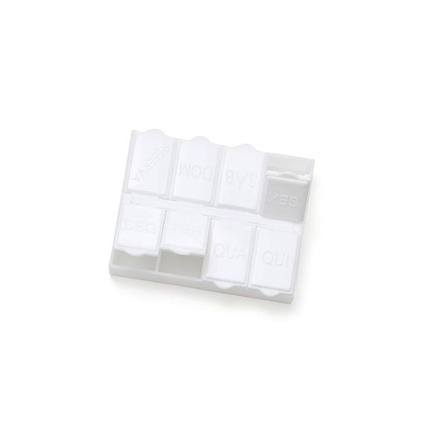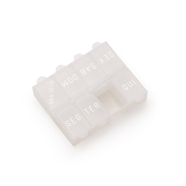 Ref: PORTACOMPRIMIDO-114Porta Comprimidos Semanal Com 8 DivisóriasPorta comprimidos semanal de plástico branco fosco. Possui oito divisórias, sete delas escrito em relevo os dias da semana e a última escrito "reserva". Verso liso. Largura : 7,6 cm Comprimento : 6,8 cm Peso aproximado (g): 19 PERSONALIZADOQuantidade mínima: 100 Incluir no Orçamento Cores * Branco Transparente Quantidade 1 Selecione 100 200 300 Quantidade 2 Selecione 100 200 300 Quantidade 3 Selecione 100 200 300 Informe outra quantidade min. 100 Solicitações adicionais > Incluir No Orçamento
